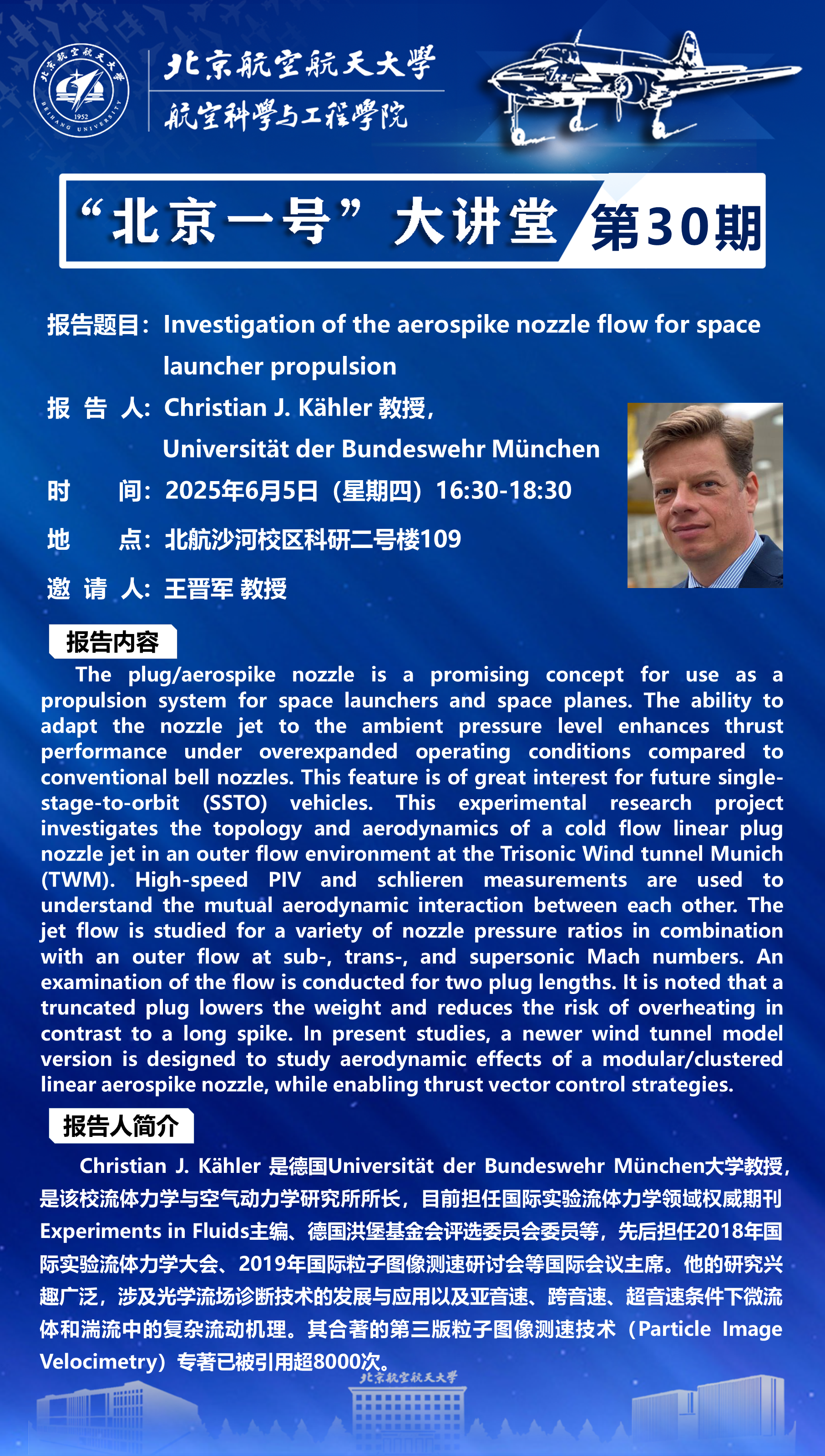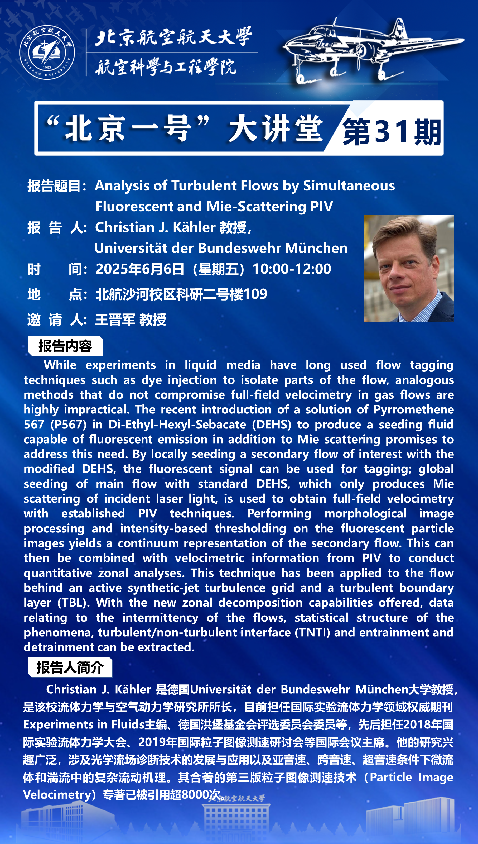 报 告 人:Christian J. Kähler, Universität der Bundeswehr München教授、Experiments in Fluids主编